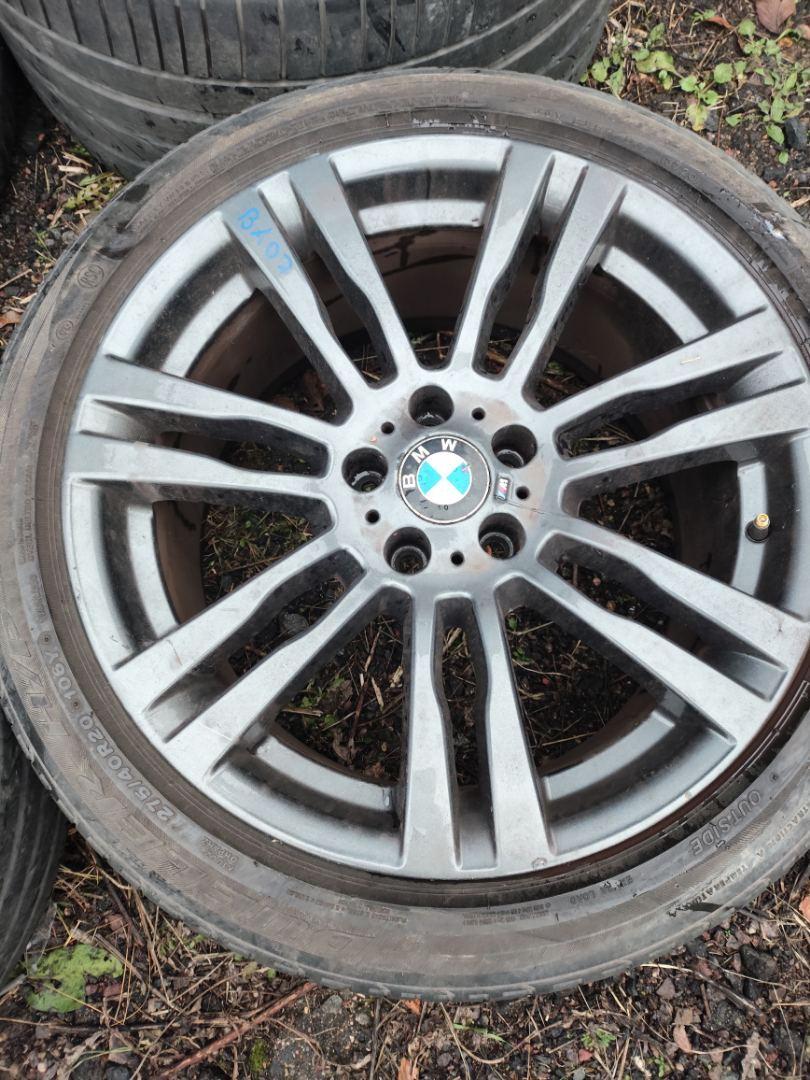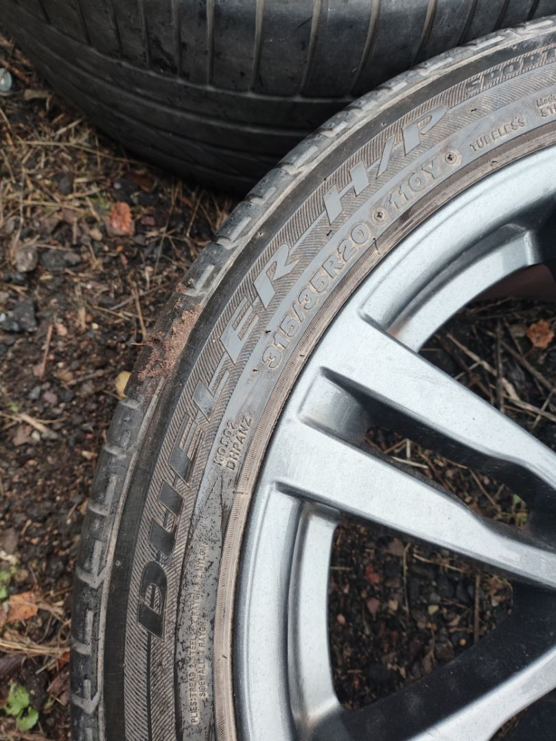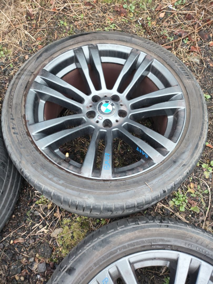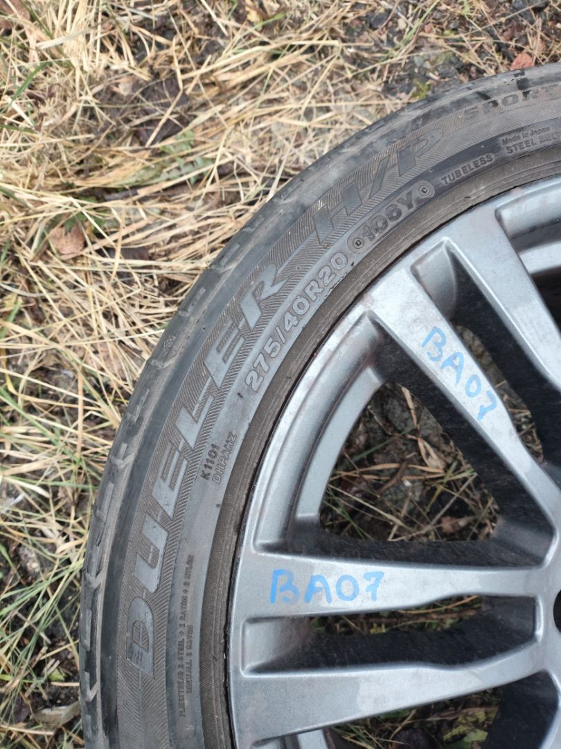 Комплект колес R20x10 5x120 (Bridgestone DUELER H/P 315/35) R20, ширина обода: 10, PCD 5x120 мм, DIA 74.1 мм, ET 40 мм. Шины: легковые, летние, 2020, остаточная высота: 6мм. BMW X5 E70 рест. E70 2011 3.0 л., N57D30B, дизель, АКПП Tiefseeblau Metallic (A76), внедорожник 5 дв., полный привод, правый руль