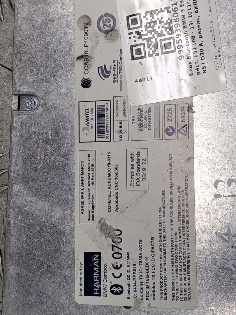 ![блок Bluetooth BMW 3 серия E92/E93 [рестайлинг] E92 2012, 3.0 л., N57 D30 A, дизель, АКПП, blue-water metallic (896), купе, задний привод, правый руль, 9257161, 84109257161 - фото №6](https://storage.yandexcloud.net/api.filesmonster.ru/gallery/c/491/683e2eb1edc8bb1930f8f737f4664a2c/preview.jpg)