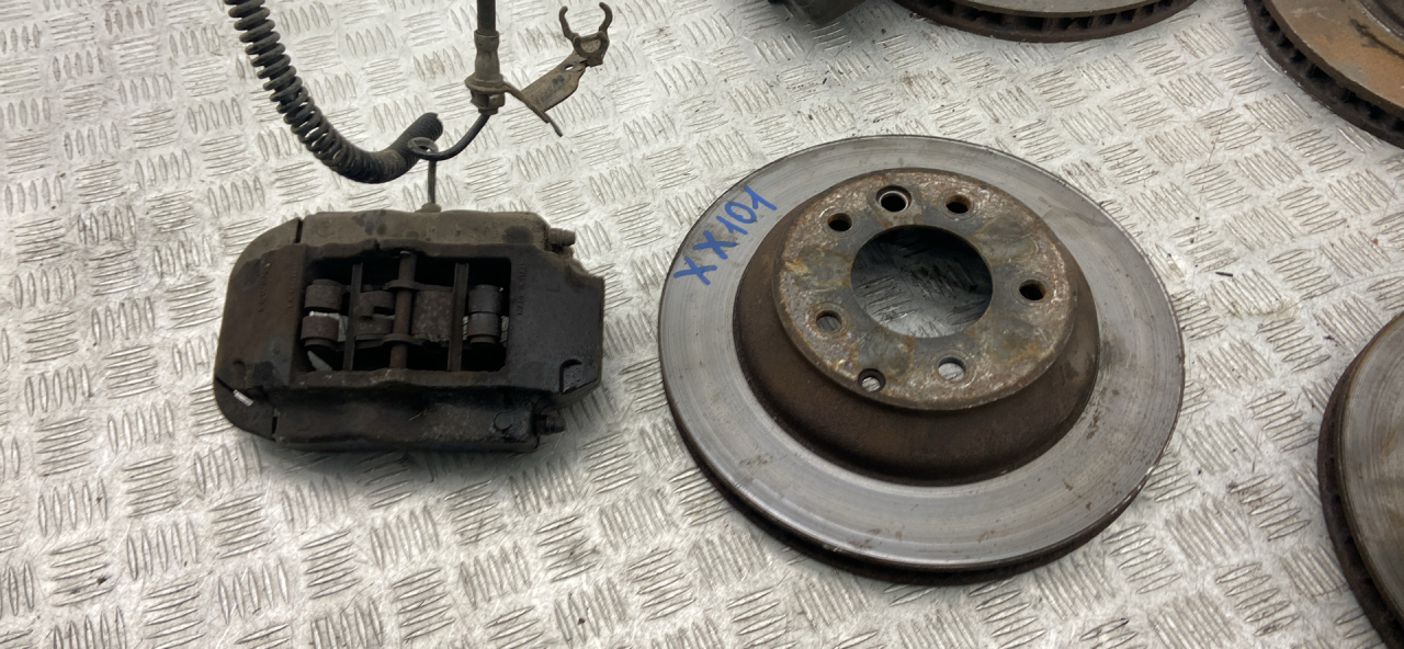 Хорошее состояние, комплект передних и задних тормозов; передние суппорта Brembo 6 поршневые, задние суппорта Brembo 4 поршневые, передние диски - диаметр 348 мм, остаток 30.5 мм, задние диски - диаметр 330 мм, остаток 26.3 мм. Цена за весь комплект