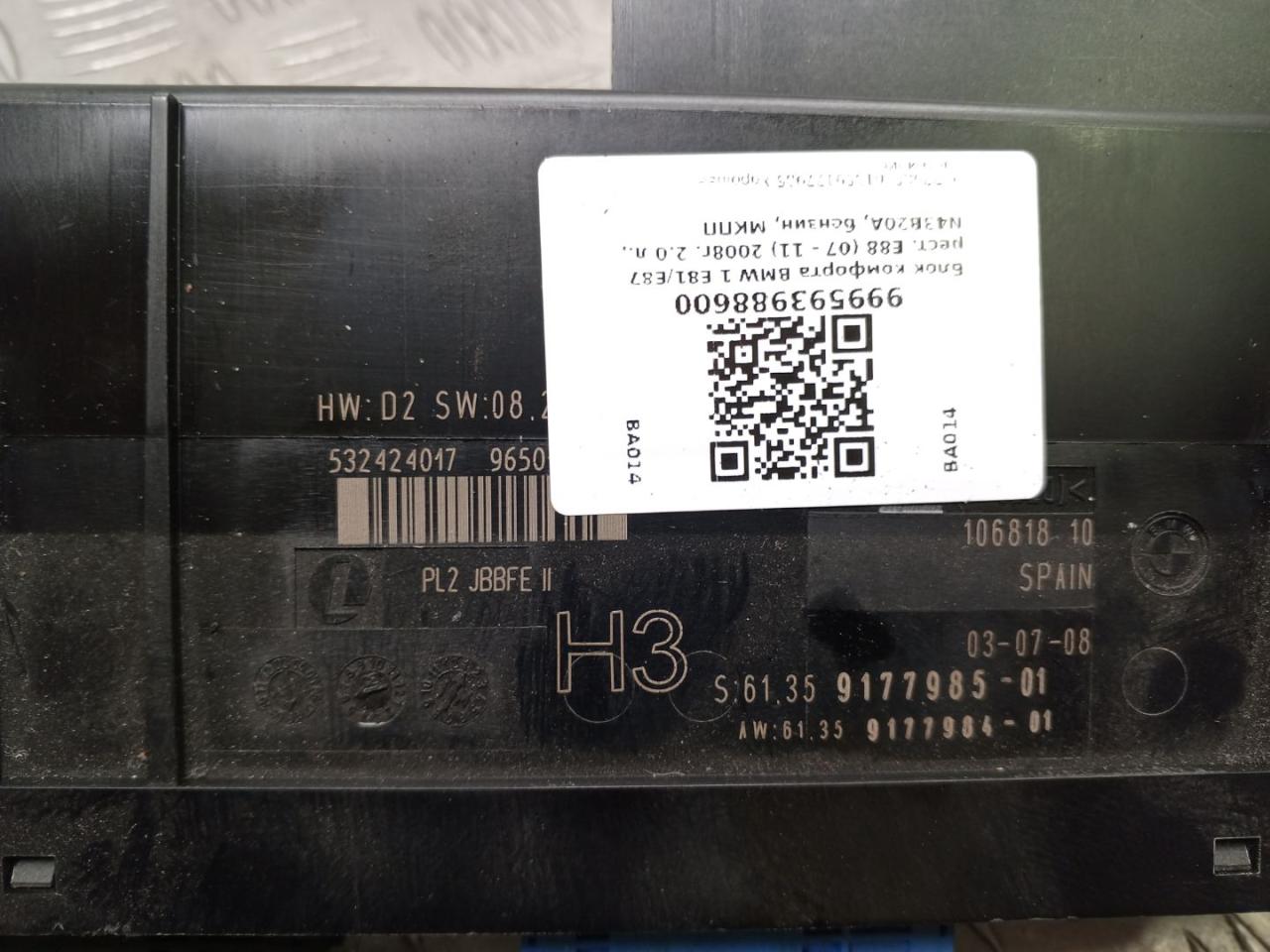 ![блок комфорта BMW 1 серия E81/E87 [рестайлинг] E88 2008, 2.0 л., N43 B20 A, бензин, МКПП, black sapphire metallic (475), кабриолет, задний привод, правый руль, 9177985, 61359177985 - фото №1](https://storage.yandexcloud.net/api.filesmonster.ru/gallery/c/491/d031858d51aa0cbe9685c484ed3c6141/0271f0cc.jpg)